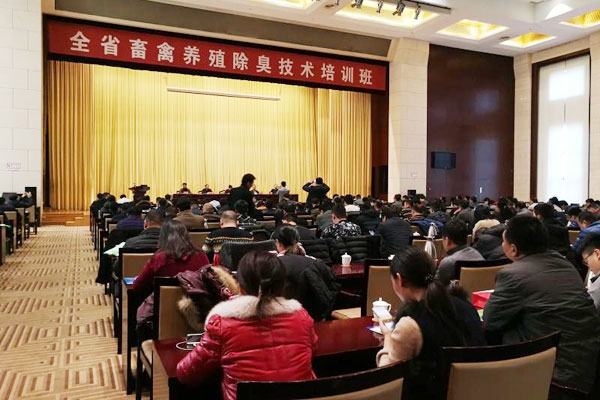 12月18日-19日,2017年山东省新型农民培训—全省畜禽养殖除臭技术培训班在淄博市齐盛宾馆顺利举办。来自全省十七地市畜牧兽医站负责人,46个畜牧养殖大县分管局长和46个畜牧养殖大县183名规模养殖场(户)共249名人员参加了课堂培训和现场培训。现场培训在临淄区宏夏农牧业开发有限公司、朱台镇于家生猪养殖小区、青年鸡场进行。山东省畜牧兽医局鲍霞总兽医师、畜牧科技处李流航处长、山东省畜牧总站曲绪仙站长出席培训班。鲍霞总兽医师在开班仪式上致辞。